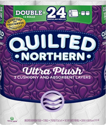 Quilted Northern Ultra Plush® 3 Ply Toilet Paper | Quilted Northern® A: Quilted Northern Ultra Plush® is a 3-ply toilet paper with three cushiony and absorbent layers for ultimate comfort that still offers a worry-free, septic-safe solution.*In well-maintained standard sewer and septic systems. Q: What are the ingredients of Quilted Northern Ultra Plush®?