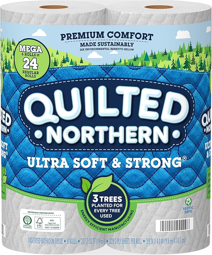 Amazon.com: quilted northern toilet paper Quilted Northern Ultra Plush 3-ply Toilet Paper, Mega Rolls, 6 Count (Pack of 1) 6 Count (Pack of 1) 4.7 out of 5 stars 7,598. ... $1.00 coupon applied at checkout Save $1.00 with coupon. Get it as soon as Fri, Sep 9. FREE Shipping by Amazon. More Buying Choices $24.99 (6 used & new offers)