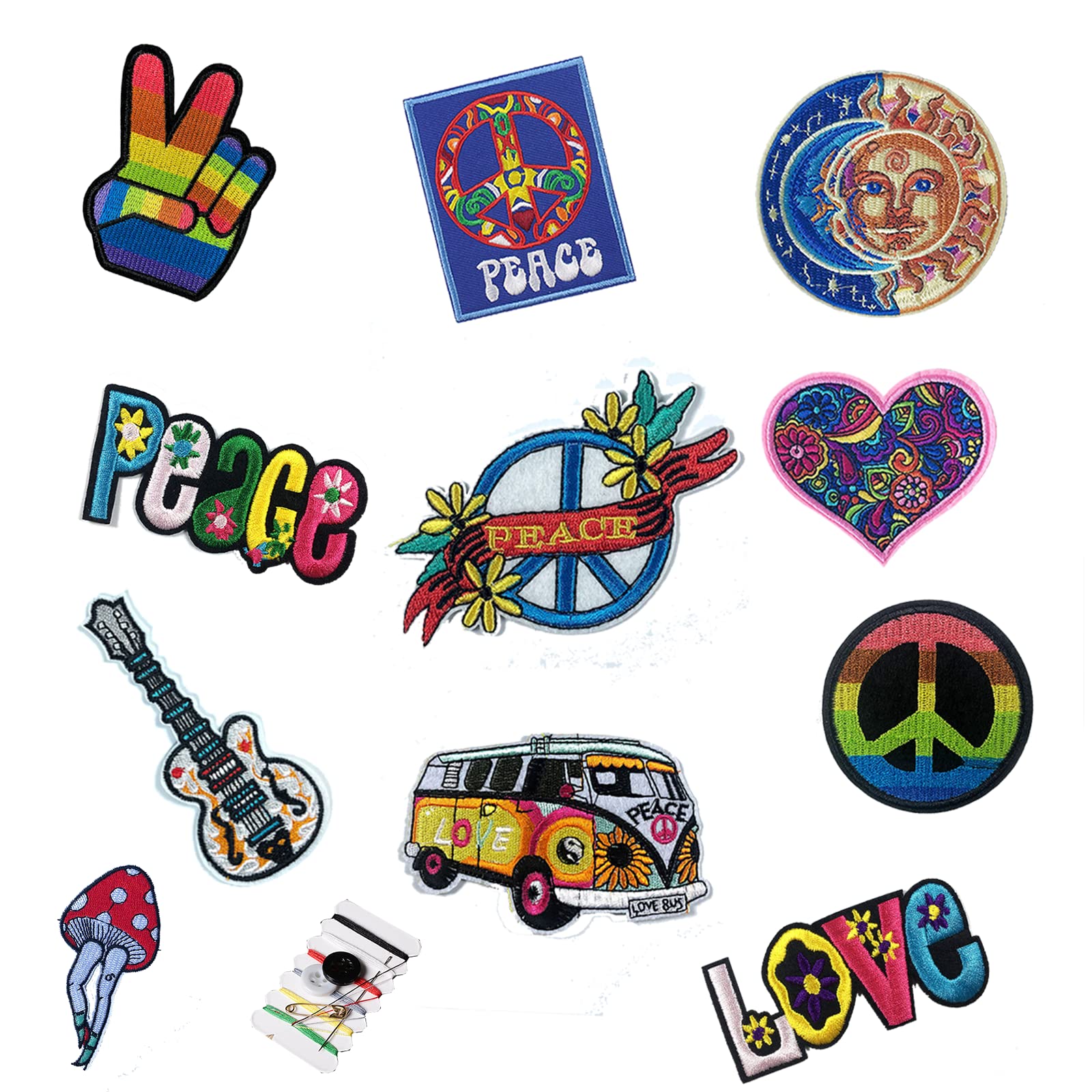 Joynaamn 12 PCS Iron on Patches for Clothing, Embroidered Decoractive Applique with Sewing Kit for Backpack Jackets Jeans Shirt, Sew on DIY Vintage ...